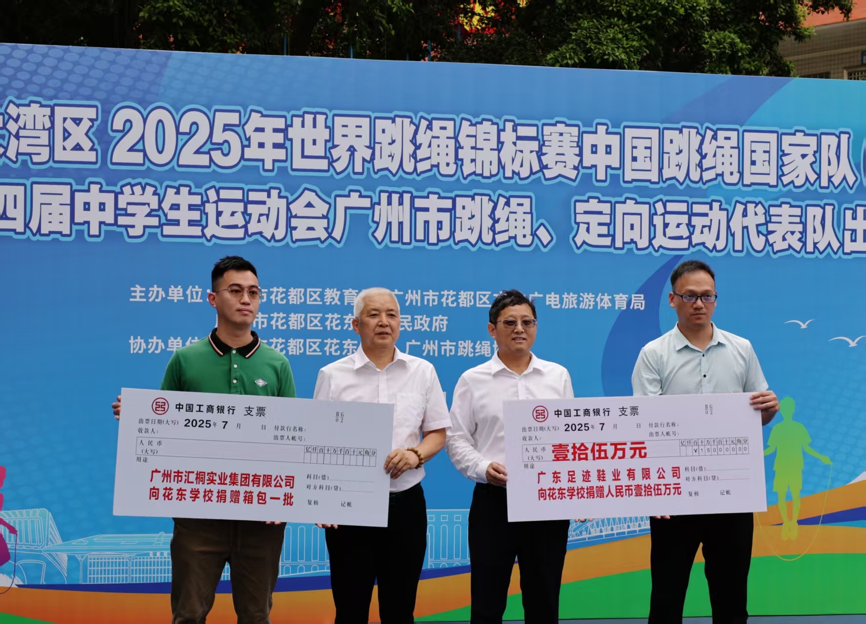 小跳绳,大舞台。7月10日,2025年世界跳绳锦标赛中国跳绳国家队(广州花都)暨广东省第十四届中学生运动会广州市跳绳、定向运动代表队出征仪式在花东学校举行。现场举行了升国旗仪式,为2025年花都区跳绳教练员、定向教练员颁发聘书,向花都区跳绳队授旗,爱心企业向花东学校捐赠助学基金,教练员、运动员们蓄势待发。