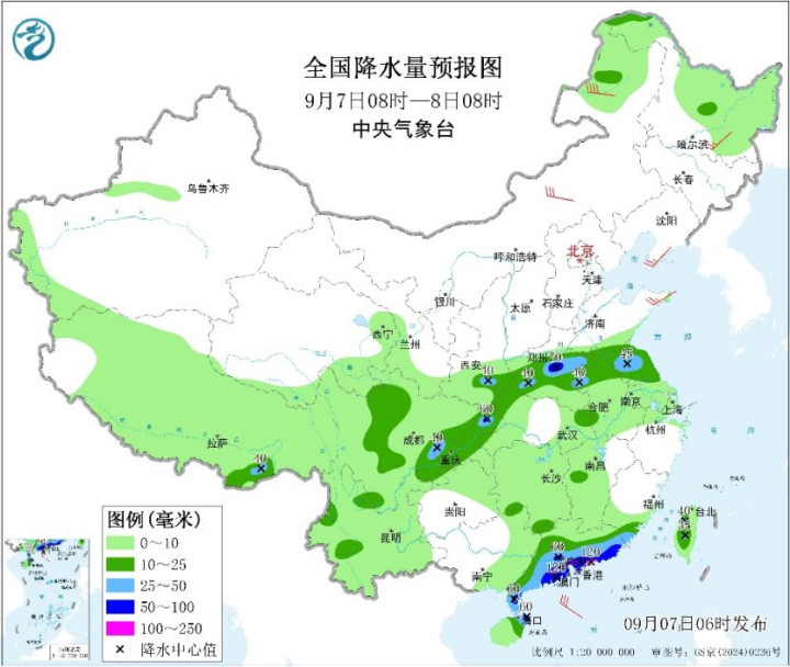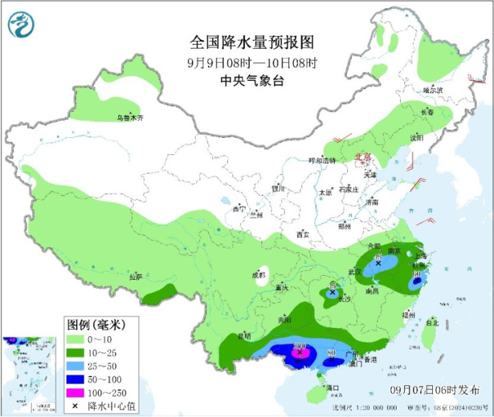 降水方面。7日至10日,广东、广西及云南南部自东向西先后有大到暴雨翼牛网,其中广东南部、广西南部等地部分地区有大暴雨,局地特大暴雨(250~400毫米);部分地区并有短时强降雨、雷暴大风等强对流天气。